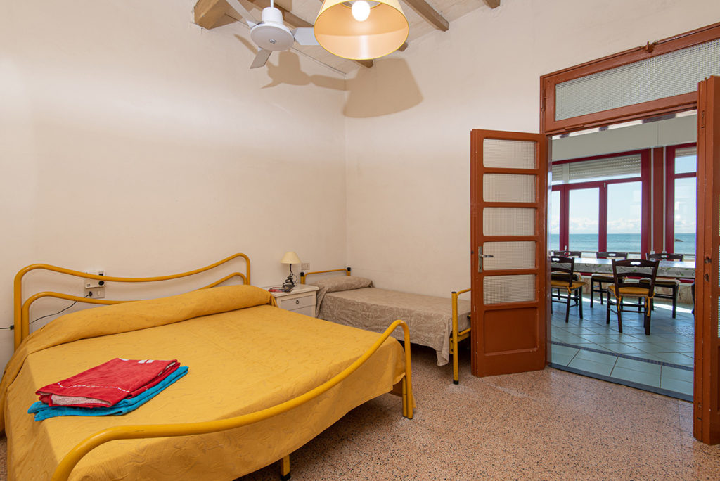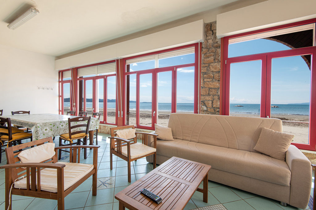Ampia casa sulla spiaggia, composta da grande soggiorno vista mare, cucina attrezzata, tre camere matrimoniali e due bagni.